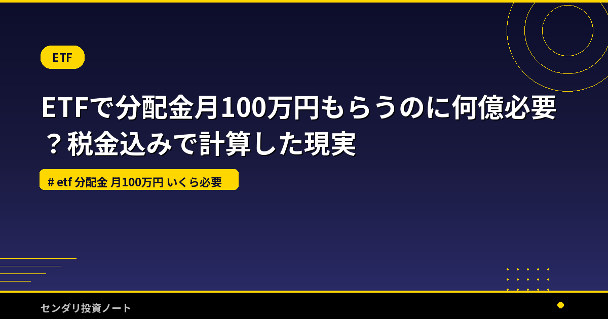 ETFの分配金には20.315%の税金がかかります(所得税15.315% + 住民税5%)。つまり、手取り100万円をもらうためには、実際は125万円の分配金が必要になるってことです。