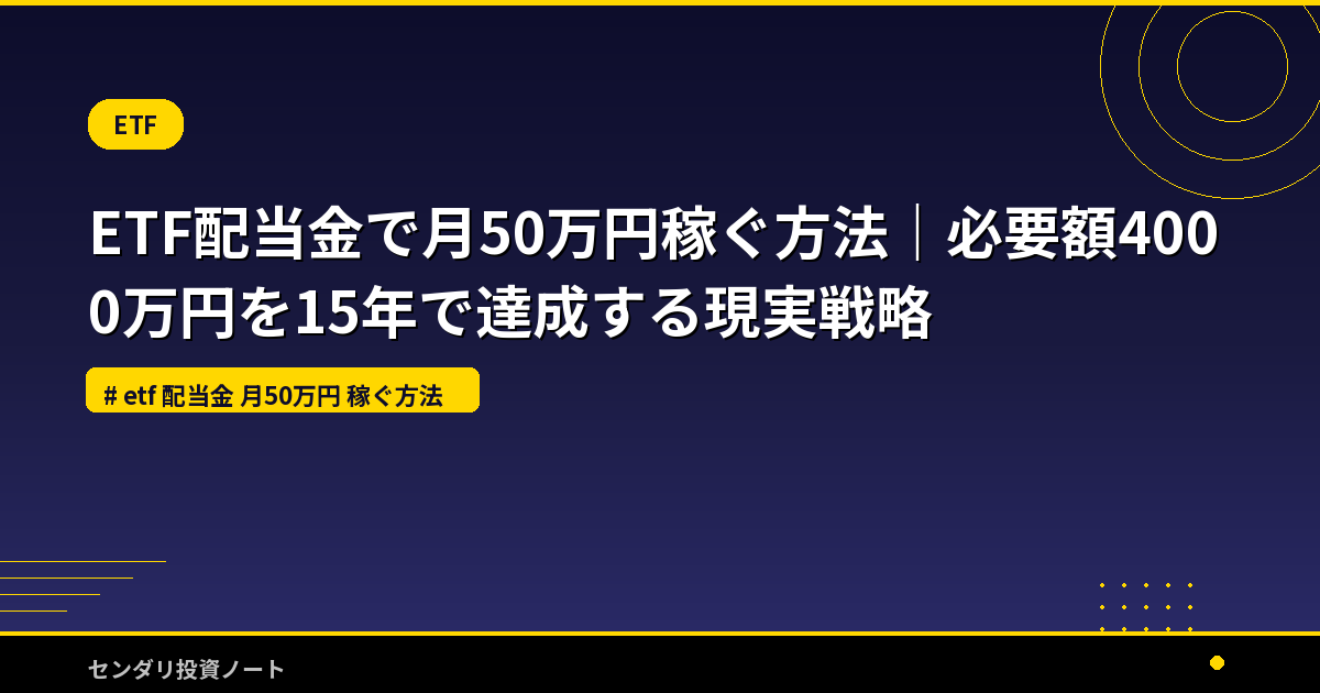 「配当金で月50万円もらえたら仕事辞められるのに…」そう思ってETFの配当利回りを調べたとき、私は愕然としました。年利回り4%でも元手1500万円必要って、一体いつになったら貯まるんだろうと。