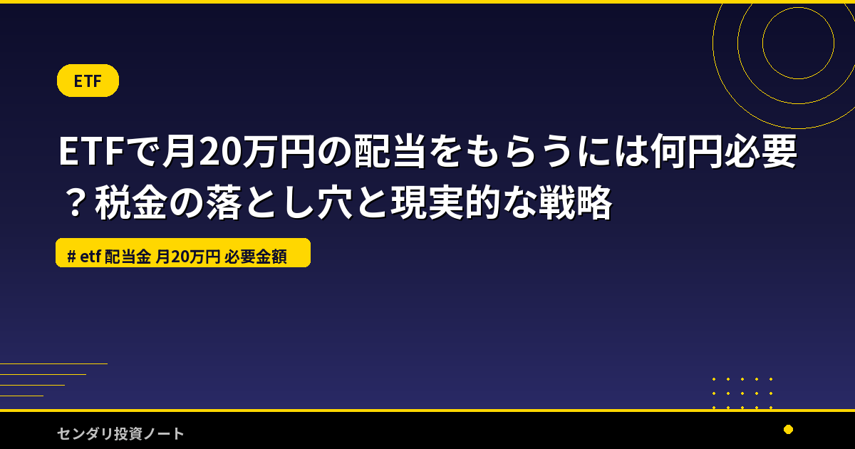 月20万円の配当を目指すETF選びで、実際に使っている判断基準を紹介します。
