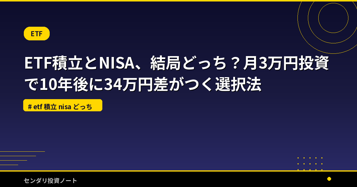 つみたてNISA枠(月10万円)を使い切った後の部分をETFで投資すると、わずかな手数料差が長期で効いてきます。